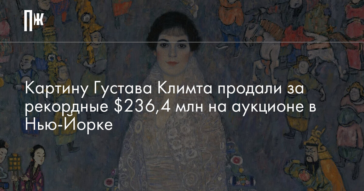 Картина Густава Климта «Портрет Элизабет Ледерер»была продана $236,4 млн на аукционе Sotheby’s в Нью-Йорке. Работа художника стала вторым самым дорогим произведением искусства, когда-либо проданным на аукционе, сообщает The Guardian.