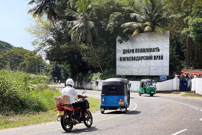 На Шри-Ланке появился билборд с надписью «Добро пожаловать в Краснодарский край». Об этом в инстаграме (Социальная сеть признана экстремистской и запрещена на территории Российской Федерации) сообщил автор работы, уличный художник Сергей Овсейкин.