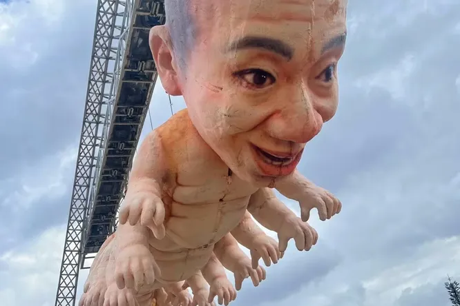 В Китае парк развлечений раскритиковали за жуткие скульптуры человека-сороконожки и трехголовой девочки