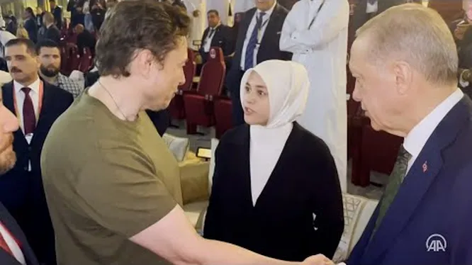 Эрдоган на встрече в Катаре минуту пожимал руку Илону Маску, прижав ее к себе. В соцсетях вспоминают другие неловкие приветствия