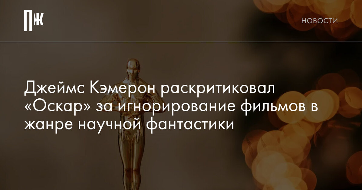 Джеймс Кэмерон раскритиковал «Оскар» за игнорирование фильмов в жанре научной фантастики