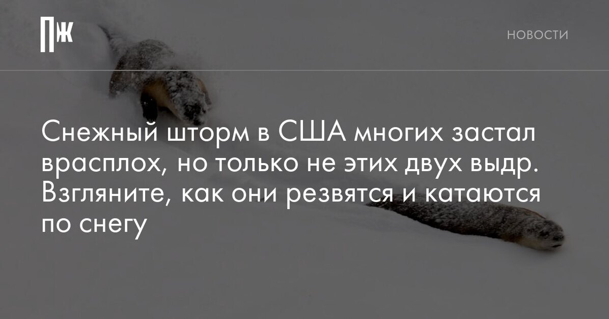 Снежный шторм в США многих застал врасплох, но только не этих двух выдр. Взгляните, как они резвятся и катаются по снегу