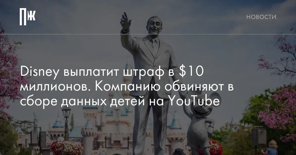 Disney выплатит штраф в $10 миллионов. Компанию обвиняют в сборе данных детей на YouTube