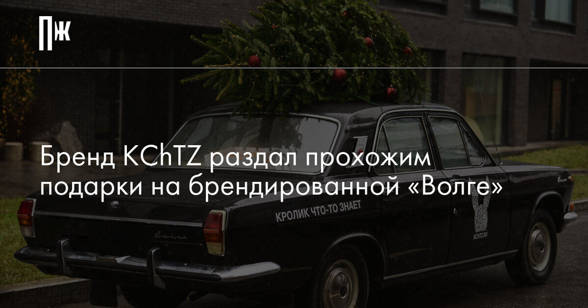 Команда бренда KChTZ / «Кролик что-то знает» провела новогоднюю кампанию с фирменной «Волгой» и елкой на крыше. Брендированная машина неделю колесила по родным краям «Кролика» – Хамовникам.