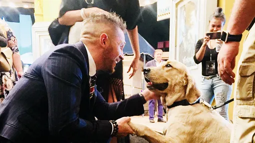 В какой-то момент взгляд Харди упал на служебную собаку, охранявшую мероприятие. Актер, большой любитель собак, не смог пройти мимо.