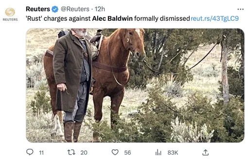 21 апреля прокуратура штата Нью-Мексико сняла с Алека Болдуина все обвинения в непредумышленном убийстве Галины Хатчинс на съемках «Ржавчины». Такое решение было принято после появления доказательств того, что оружие, выстрелившее в руках актера, было заряжено боевым патроном.