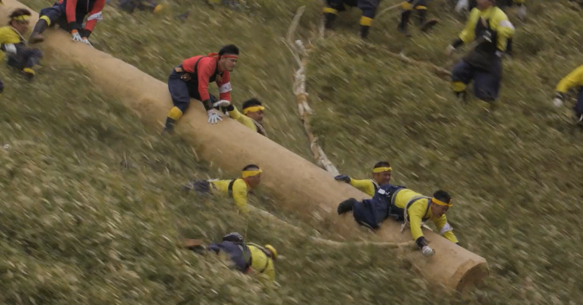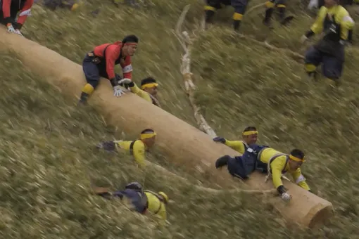 Ритуальный спуск с горы на огромном бревне