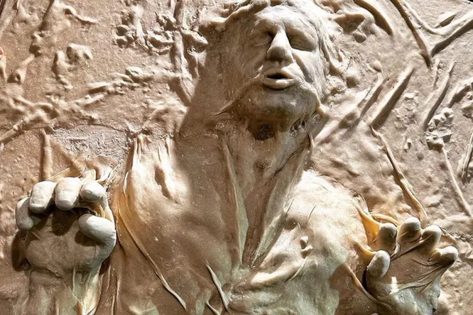 Скульптура отражает момент из фильма «Звездные войны. Эпизод V: Империя наносит ответный удар» 1980 года, когда Соло в исполнении Харрисона Форда заморозили в карбоните.