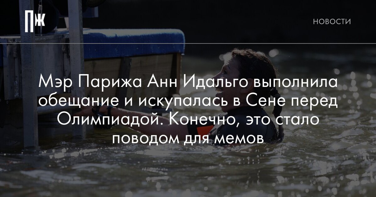 Мэр Парижа Анн Идальго выполнила обещание и искупалась в Сене перед Олимпиадой. Конечно, это стало поводом для мемов
