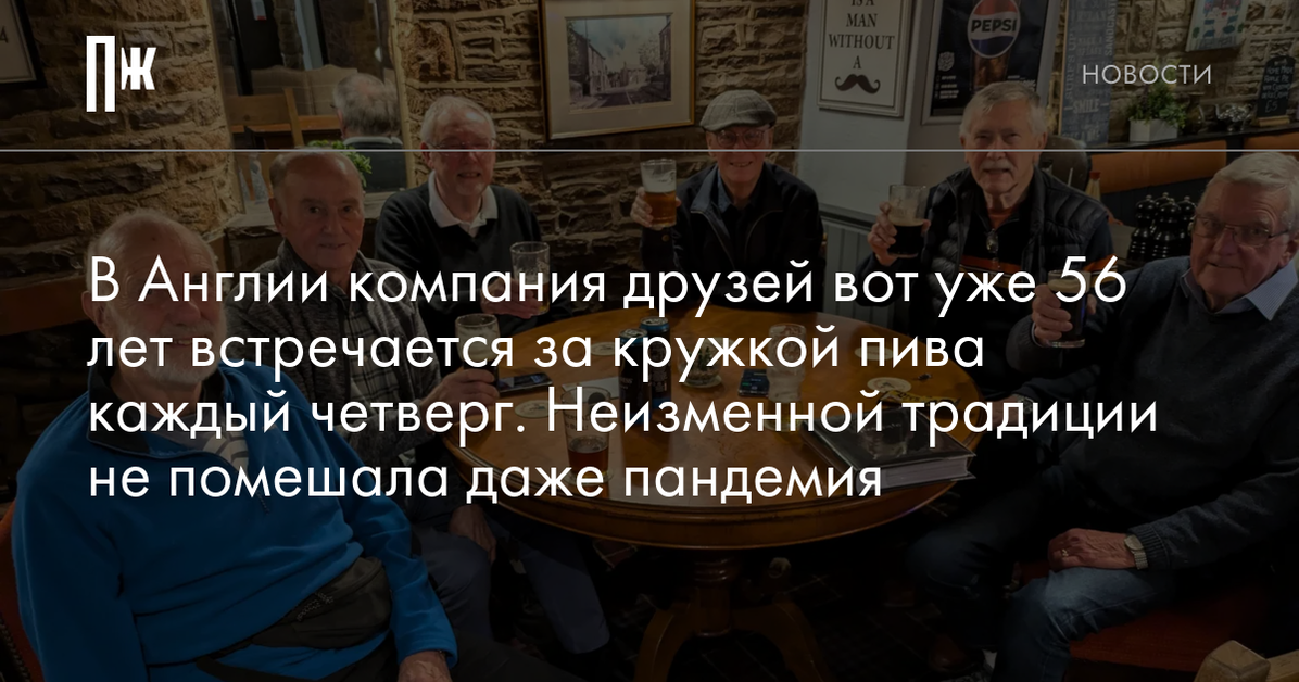 В Англии компания друзей вот уже 56 лет встречается за кружкой пива каждый четверг. Неизменной традиции не помешала даже пандемия