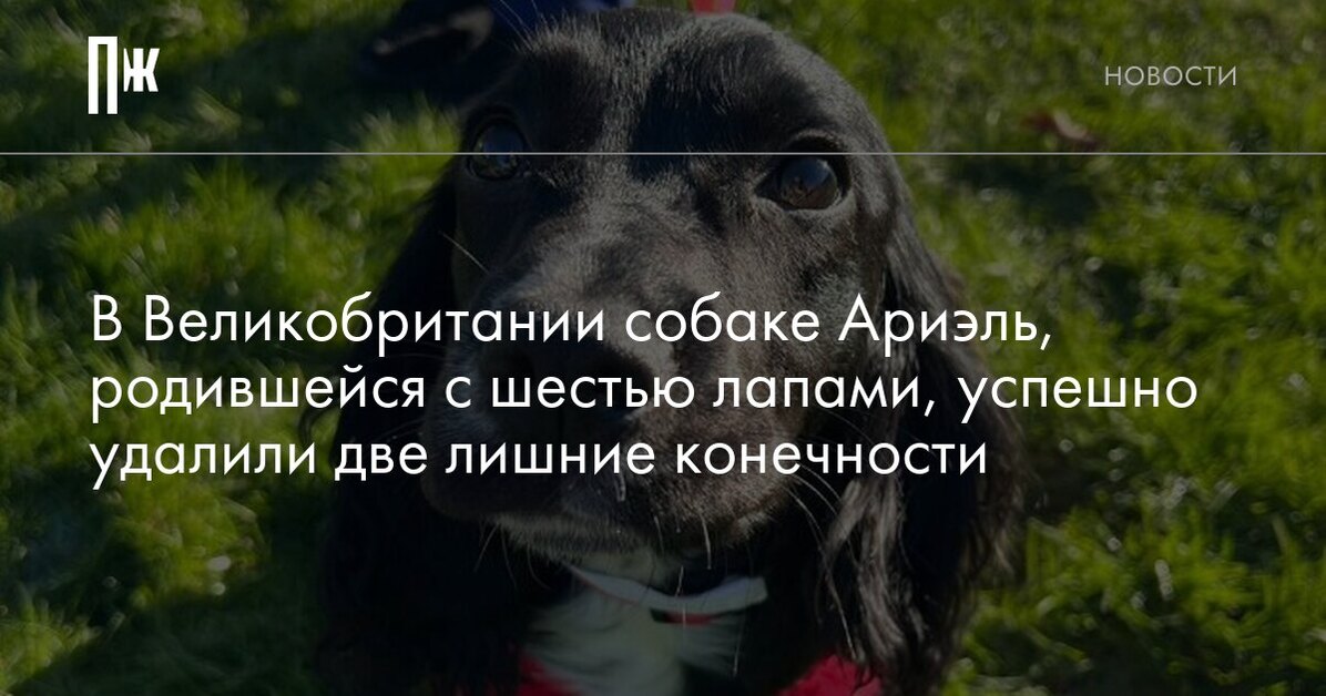 В Великобритании прооперировали спаниеля по кличке Ариэль, которая родилась с шестью лапами. Об этом сообщается на сайте бристольской ветклиники Lanford Vets.