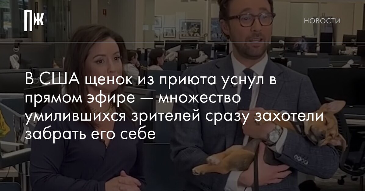 В США щенок из приюта уснул в прямом эфире — множество умилившихся зрителей сразу захотели забрать его себе
