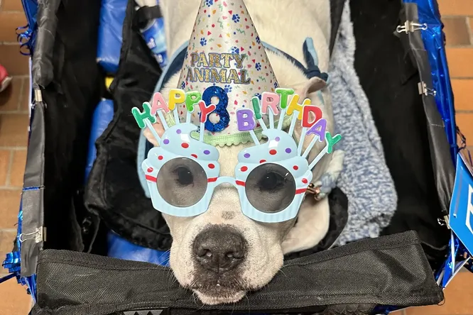 В одной из школ Нью-Джерси, США, отметили день рождения любимого сотрудника — глухого пса по кличке Коул. Вот уже семь лет он работает там собакой-терапевтом — каждый год ученики устраивают грандиозные вечеринки в честь именинника, чтобы показать, как сильно они его ценят.