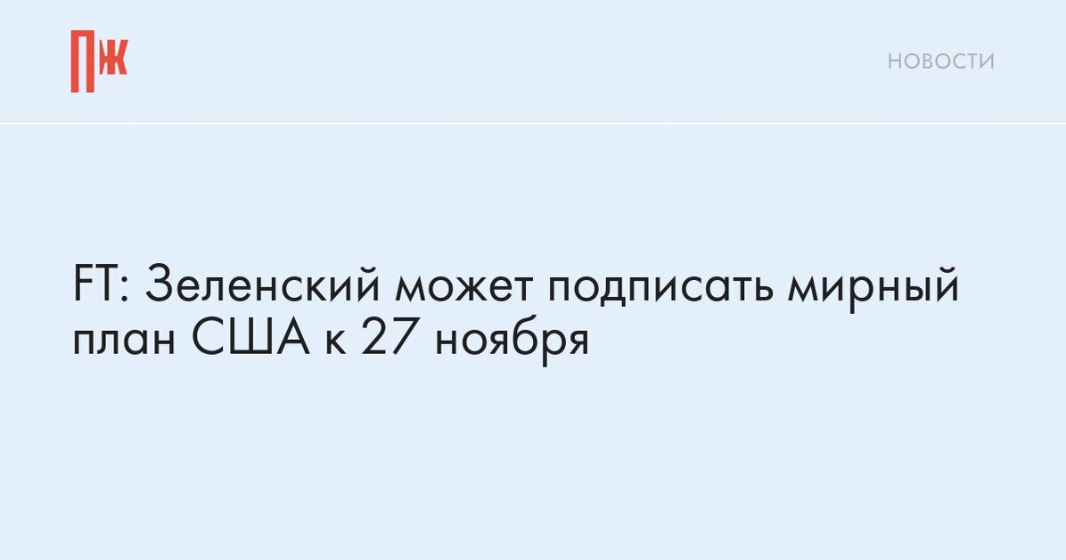 FT: Зеленский может подписать мирный план США к 27 ноября