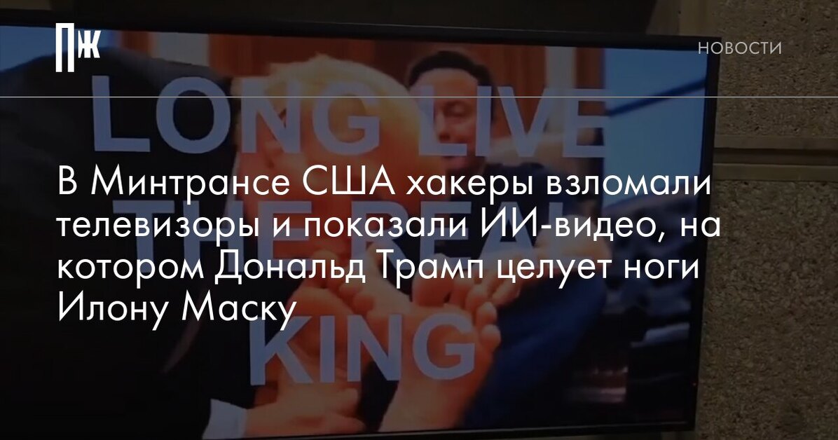 В Минтрансе США хакеры взломали телевизоры и показали ИИ-видео, на котором Дональд Трамп целует ноги Илону Маску