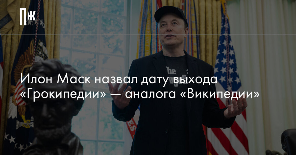 «Грокипедия» (Grokipedia), аналог «Википедии» от Илона Маска, выйдет через две недели. Об этом бизнесмен сообщил в соцсети X.