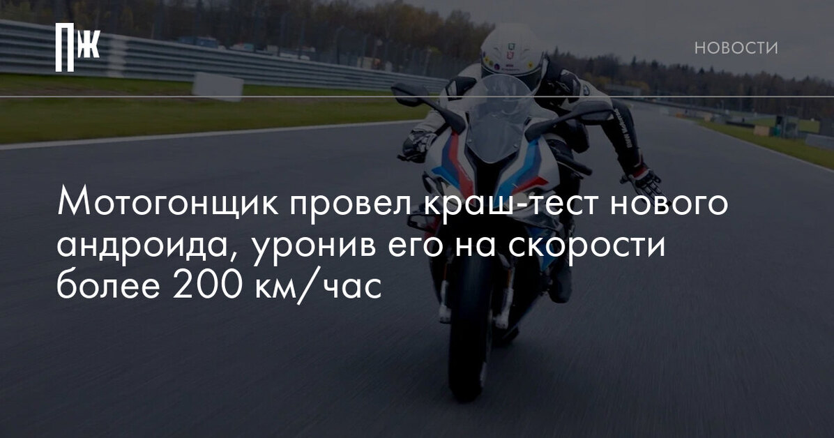 Мотогонщик провел краш-тест нового андроида, уронив его на скорости более 200 км/час