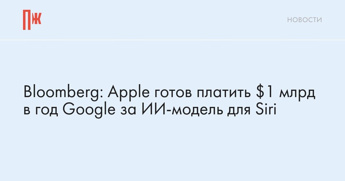Apple готов платить $1 млрд в год Google за использование сверхмощной ИИ-модели для модернизации Siri. Об этом сообщает Bloomberg.