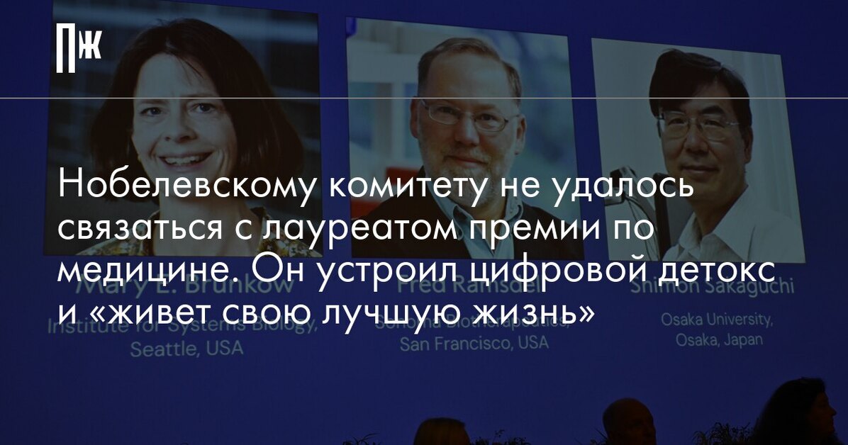 Нобелевскому комитету не удалось связаться с лауреатом премии по медицине. Он устроил цифровой детокс и «живет свою лучшую жизнь»