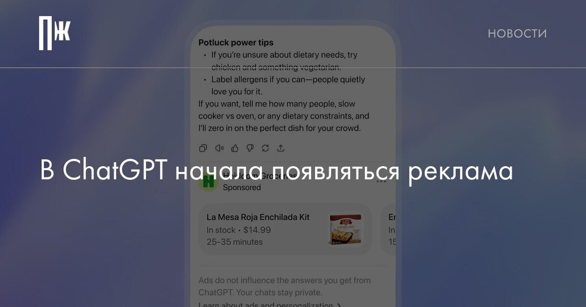 В OpenAI заверили, что реклама не повлияет на ответы чат-бота, а разговоры с ним не раскрываются рекламодателям.