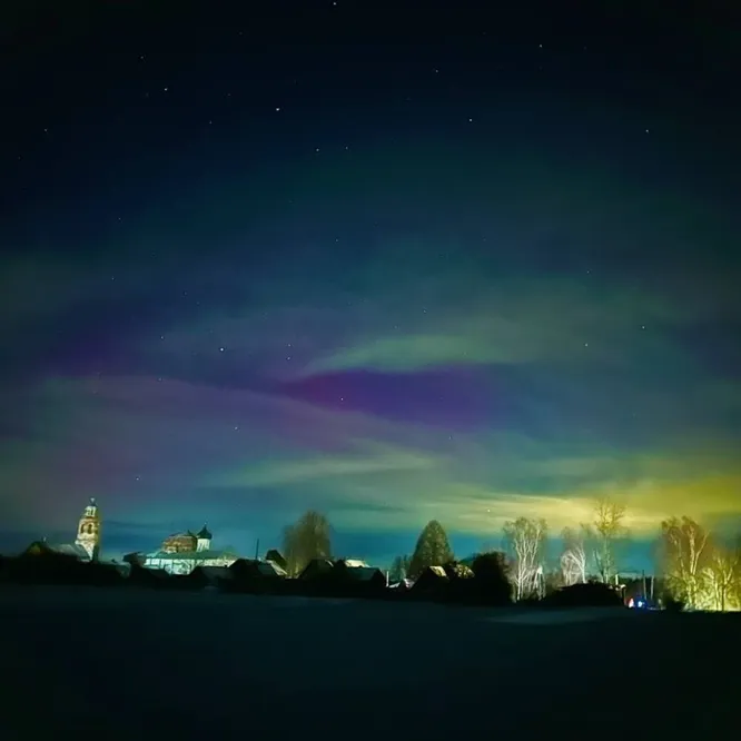 Из-за сильной магнитной бури северное сияние озарило также небо в Мурманской, Владимирской и Ярославской областях.