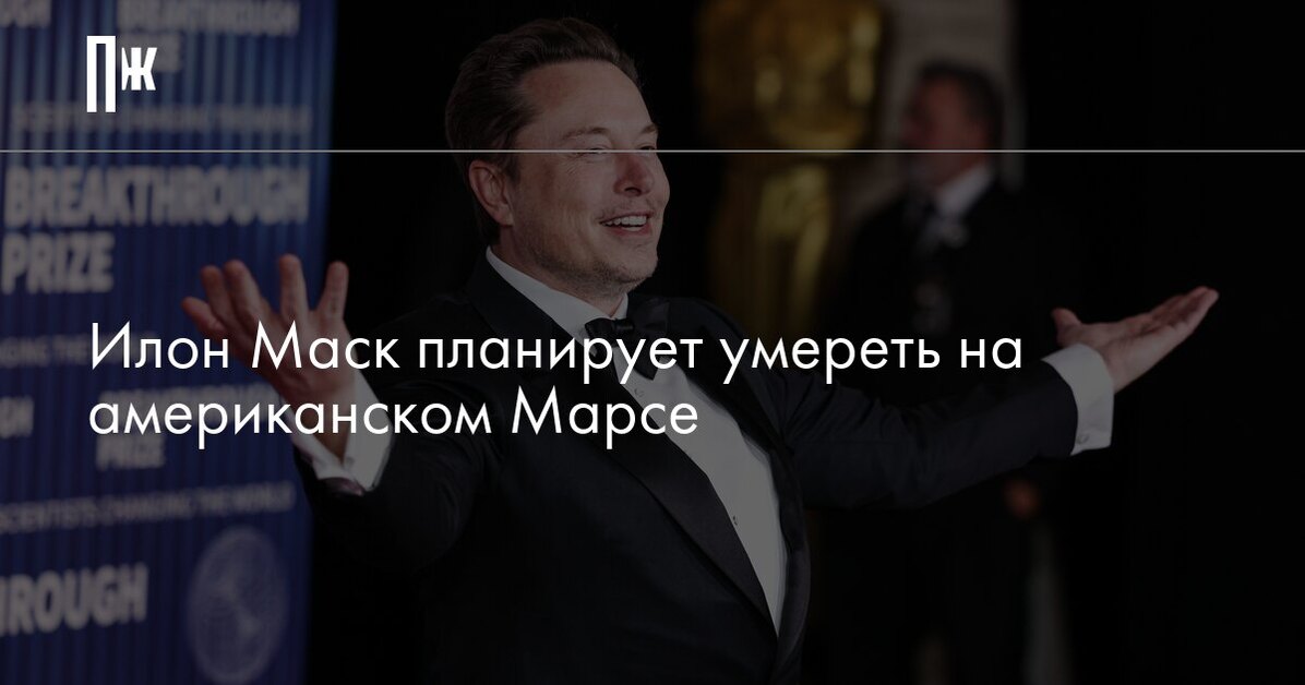 Илон Маск заявил в X о желании умереть на Марсе в том случае, если планета станет частью США.