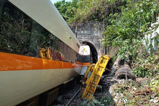Авария произошла при въезде в туннель в уезде Хуаялянь. Поезд столкнулся с техникой, расчищавшей пути от камней, и с рельсов сошли два вагона. Часть вагонов состава врезалась в стены туннеля.