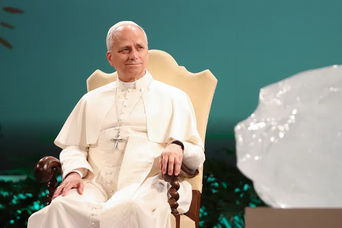 Папа римский Лев XIV благословил глыбу льда, сообщает Daily Mail.