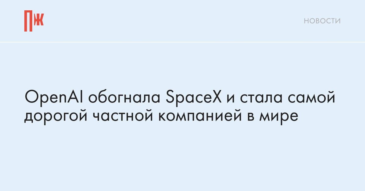 OpenAI обогнала SpaceX и стала самой дорогой частной компанией в мире