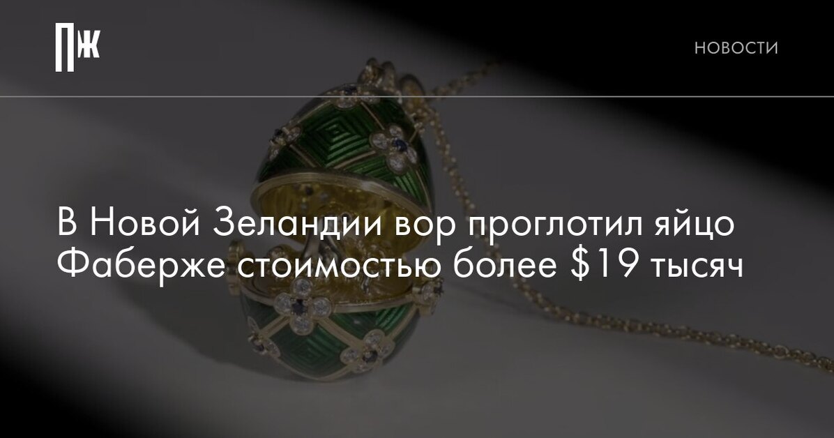 В Новой Зеландии полиция задержала 32-летнего мужчину, который проглотил подвеску Fabergé стоимостью $19,2 тыс. Об этом сообщает The Guardian.