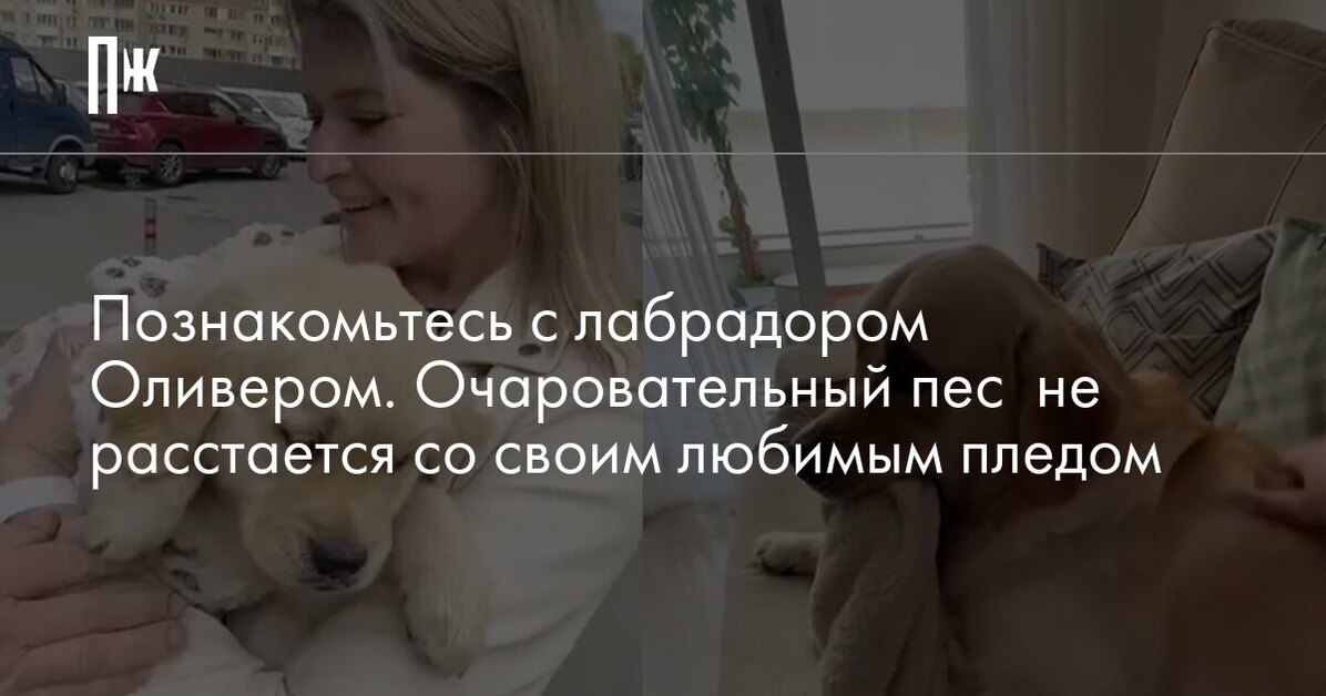 Лабрадор по имени Оливер стал звездой TikTok после того, как люди узнали о его трогательной особенности: пес всюду таскает с собой свой плед, в который его укутывали щенком.
