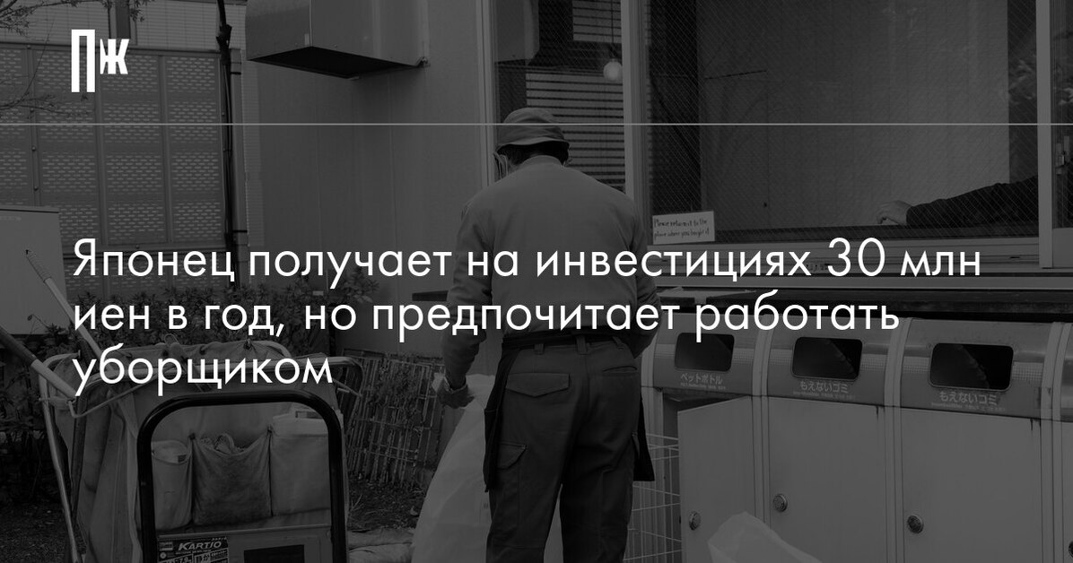 Японец получает на инвестициях 30 млн иен в год, но предпочитает работать уборщиком