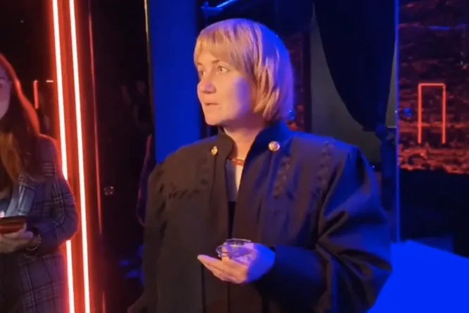 Пресс-служба также опубликовала видео с выездного заседания в стриптиз-клубе. В ролике, сопровождающемся песней Сэм Браун Stop, Воробьева в мантии заслушивает стороны в приглушенном освещении из разноцветных софитов.