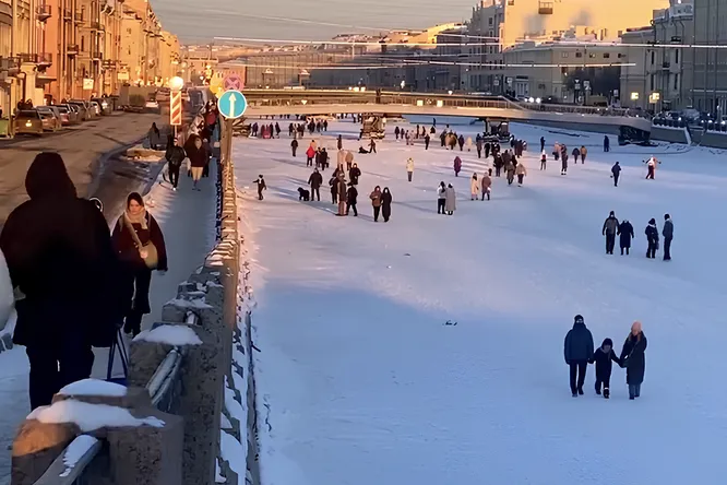 В Петербурге прогулки по замерзшим рекам и каналам стали новым трендом среди горожан