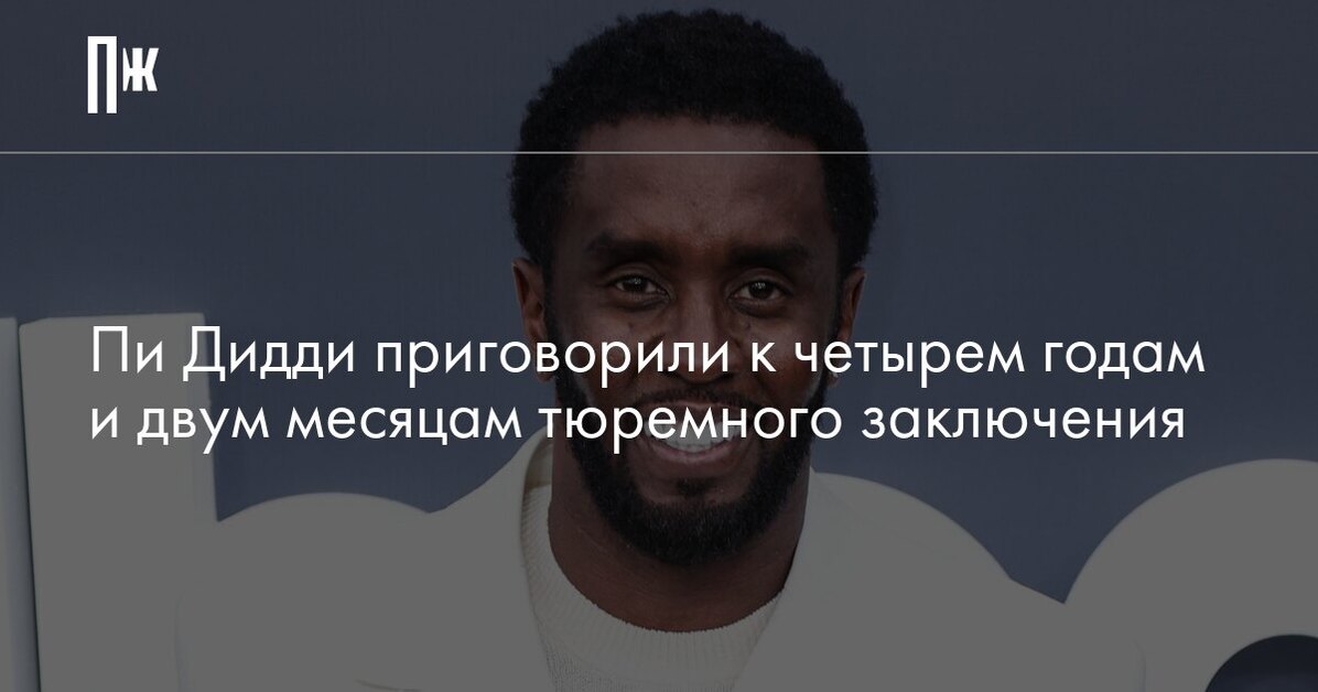 Федеральный суд Нью-Йорка приговорил рэпера и продюсера Шона Комбса, известного как Пи Дидди, к 4 годам и 2 месяцам лишения свободы и штрафу в $500 тыс. Об этом сообщает CNN.