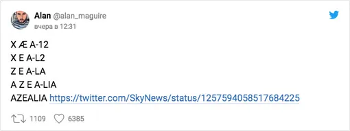 4 мая Илон Маск в шестой раз стал отцом: у его подруги Граймс родился сын. Пару уже вовсю поздравляли с этим событием, когда они решили подкинуть интернету еще один повод для обсуждения и сообщили, что назвали ребенка X Æ A-12 Маск.