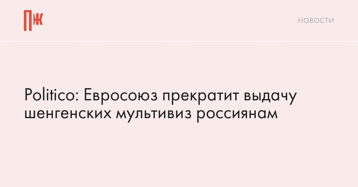 Евросоюз прекратит выдачу шенгенских мультивиз россиянам «в большинстве случаев». Об этом сообщает Politico.