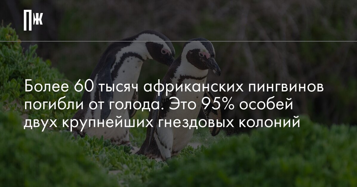 Более 60 тысяч африканских пингвинов погибли от голода. Это 95% особей двух крупнейших гнездовых колоний