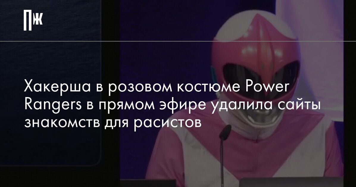 Хакерша в розовом костюме Power Rangers в прямом эфире удалила сайты знакомств для расистов