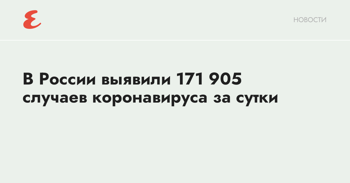 За последние сутки в России выявлено 171 905 новых случаев коронавируса. Об этом сообщает оперштаб по борьбе с инфекцией.