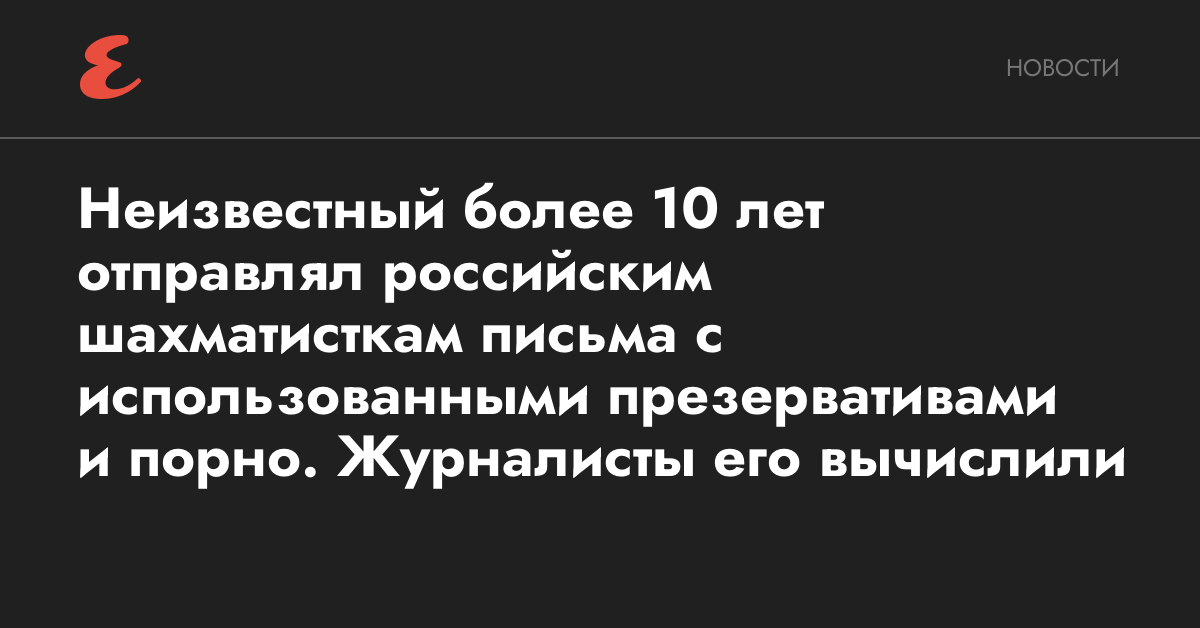 Неизвестный более 10 лет отправлял российским шахматисткам письма с использованными презервативами и порно. Журналисты его вычислили