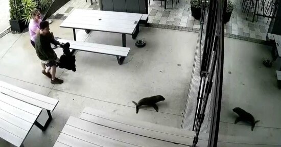 Бар в Новой Зеландии поделился записью с камер наблюдения, на которой запечатлен необычный посетитель — детеныш морского котика. Об этом пишет UPI.