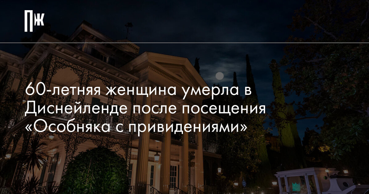Посетительница Диснейленда в Анахайме, Калифорния, скончалась после визита в «Особняк с привидениями». Об этом сообщает Variety.