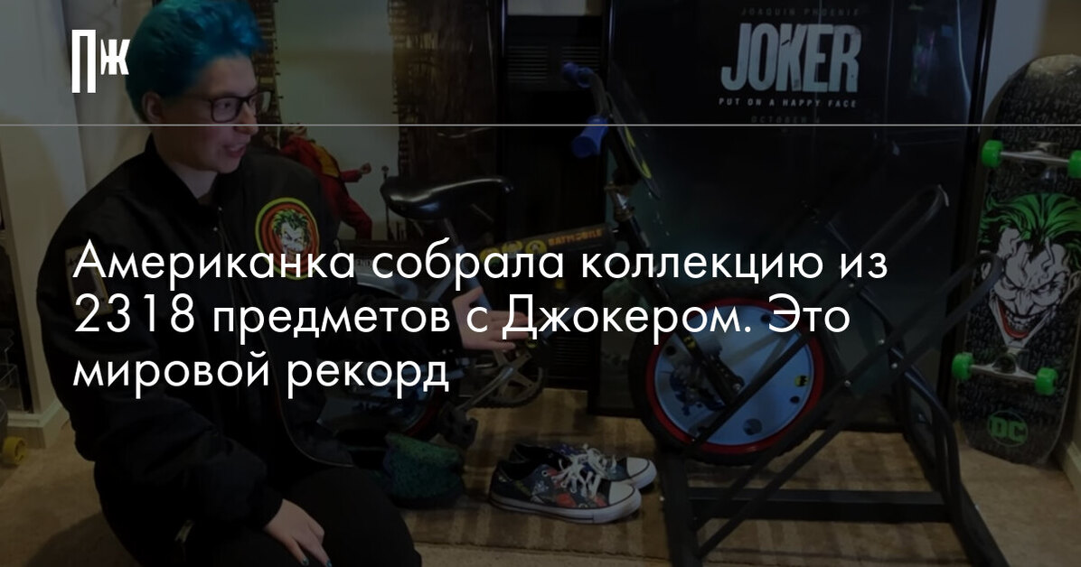 22-летняя Меган Пирс из Индианы попала в Книгу рекордов Гиннесса благодаря своей коллекции вещей, связанных со злодеем DC Comics Джокером. Об этом сообщает UPI.