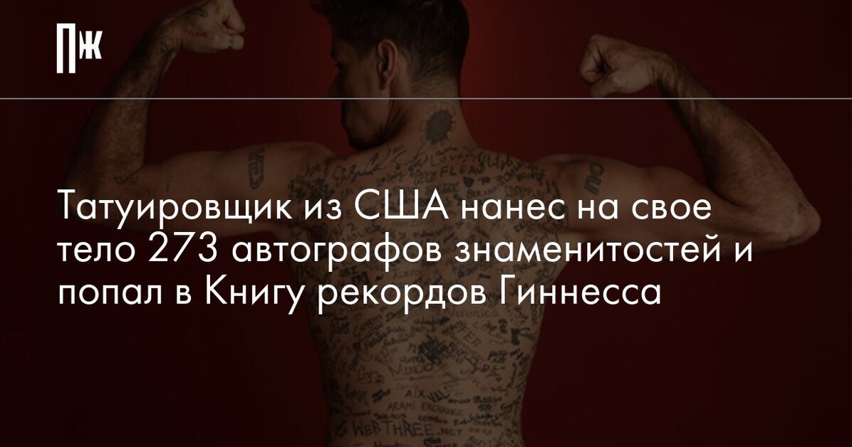 Татуировщик из США нанес на свое тело 273 автографов знаменитостей и попал в Книгу рекордов Гиннесса