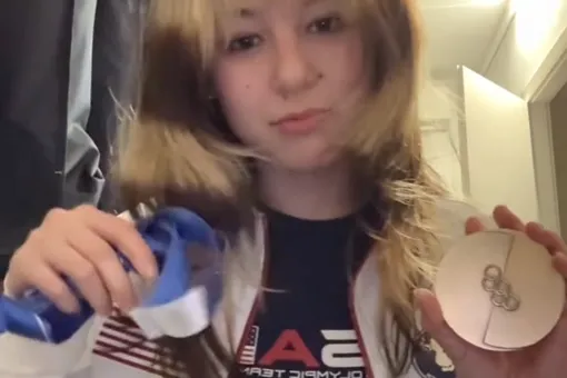 Фигуристка из США Алиса Лью опубликовала в своих соцсетях ролик, на котором показала свою медаль, оторвавшуюся от ленты. «Моей медали не нужна лента», — пошутила Лью.