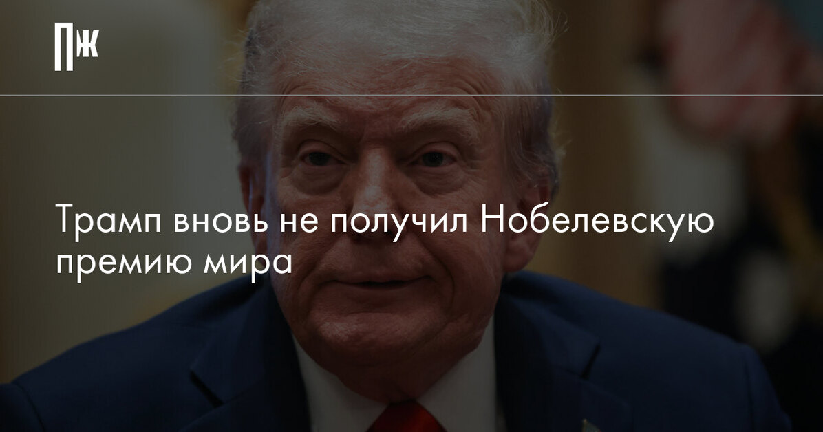 Президент США Дональд Трамп вновь не получил Нобелевскую премию мира. Лауреатом 2025 года была объявлена лидер демократического движения в Венесуэле Мария Корина Мачадо.