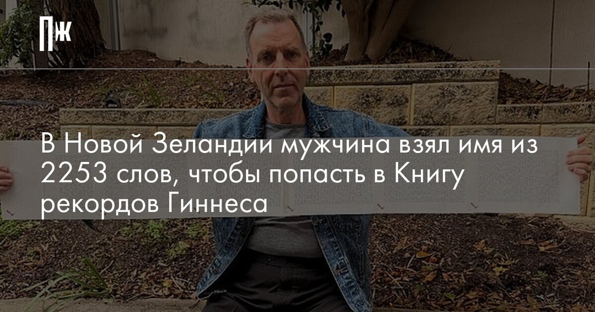 В Новой Зеландии мужчина взял имя из 2253 слов, чтобы попасть в Книгу рекордов Гиннесса