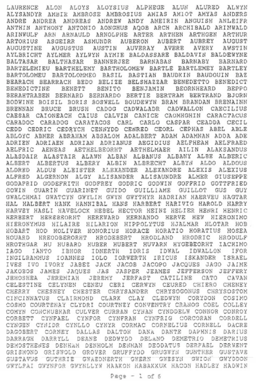 Имя Лоуренса занимает примерно шесть страниц печатного текста. На свадьбе мужчины церемониймейстеру потребовалось более 20 минут, чтобы прочитать его полное имя.