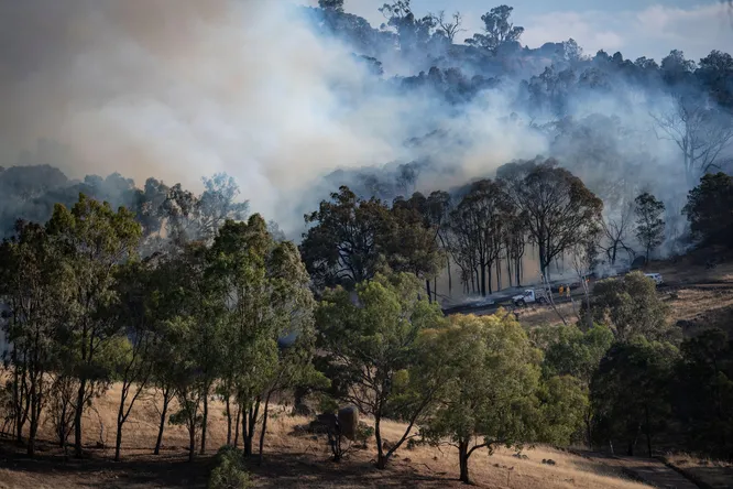 Пожары, вышедшие из-под контроля из-за жары, с середины недели охватили более 350 тыс. га лесной местности в штате Виктория.